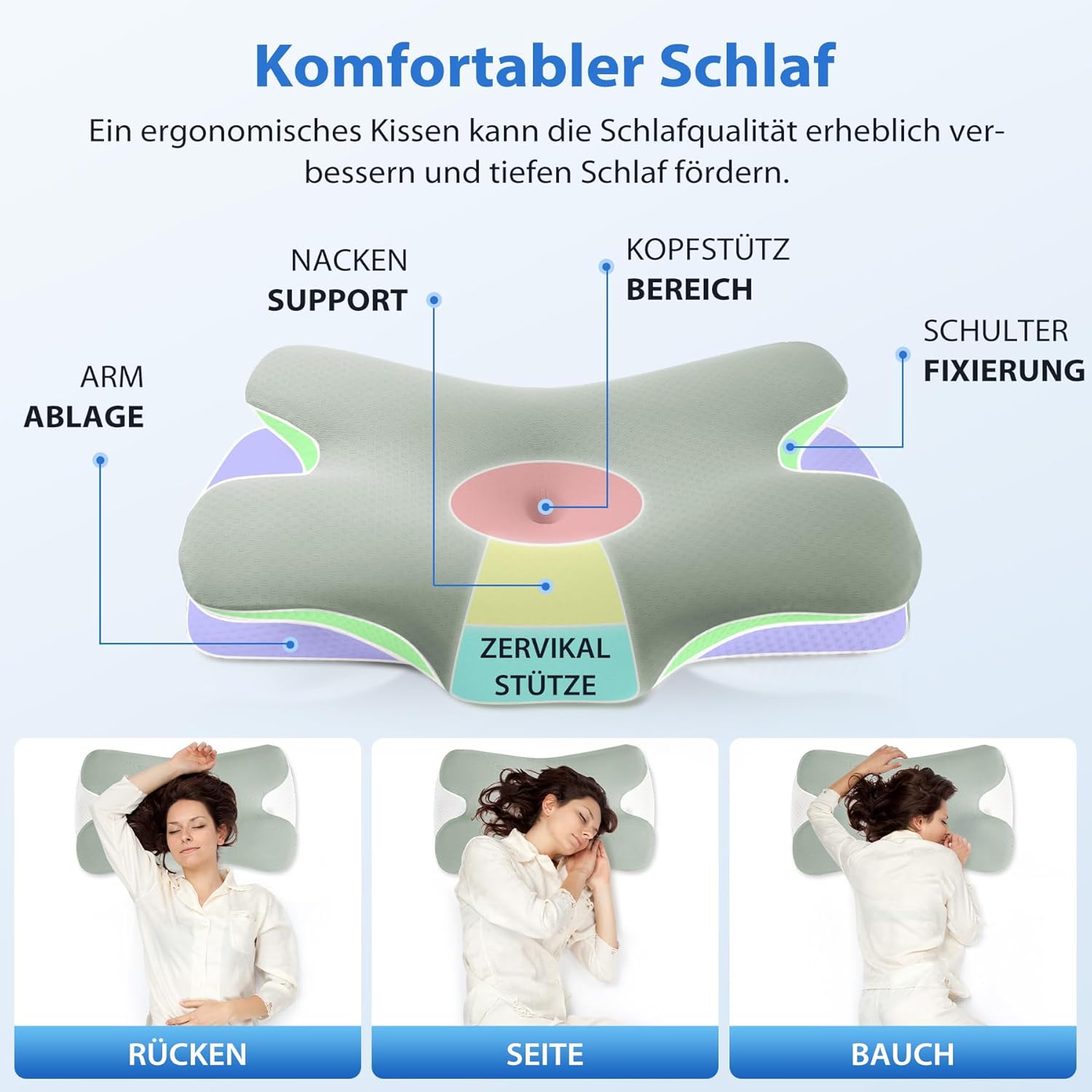 Stellen Sie sich vor, jeden Morgen erfrischt und schmerzfrei aufzuwachen. Die Lösung für unruhige Nächte und anhaltende Nackenschmerzen ist zum Greifen nah. Dieses ergonomische Kissen ist so konzipiert, dass es Ihren Nacken und Kopf sanft umschließt und Ihnen überlegene Unterstützung und Komfort bietet, die Ihre Schlafqualität revolutionieren. Es besteht aus hochwertigem MEMORY-Schaum, der sorgfältig geformt wurde, um sich an die natürliche Krümmung Ihrer Halswirbelsäule anzupassen. Dadurch wird sichergestellt, dass Ihr Kopf in der optimalen Position unterstützt wird. Während Sie sich ausruhen, passt sich der MEMORY-Schaum perfekt an die Konturen von Nacken und Kopf an. Dieses innovative Design reduziert Druckpunkte, die zu Unbehagen und Steifheit führen können – so können Sie in einen tiefen, erholsamen Schlaf gleiten. Ob Sie auf dem Rücken oder der Seite schlafen, dieses Kissen bietet Ihnen genau die Unterstützung, die Sie benötigen. Das duale Konturdesign ermöglicht vielseitige Schlafmöglichkeiten, mit einer höheren Kurve für Seitenschläfer und einer sanfteren Neigung für Rückenschläfer. Verabschieden Sie sich von umherwälzen – jede Nacht kann jetzt ein Rückzugsort der Unterstützung und Entspannung sein. Dieses Kissen ist ideal für alle, die unter Nackenschmerzen, chronischen Beschwerden aufgrund einer schlechten Schlafhaltung leiden oder einfach die allgemeine Schlafqualität verbessern möchten. Wenn Sie schon einmal mit steifen Schultern oder einem schmerzenden Nacken aufgewacht sind, wissen Sie, wie frustrierend das sein kann. Dieses ergonomische Kissen bietet nicht nur Linderung, sondern auch einen Weg zu einer erholsamen Nachtruhe. Zu den Hauptmerkmalen gehören: - **Memory-Schaum-Konstruktion**: Bietet personalisierte Unterstützung, indem es sich an Ihre individuelle Form anpasst. - **Ergonomisches Design**: Gewährleistet die richtige Ausrichtung der Wirbelsäule, um Nacken- und Rückenschmerzen zu reduzieren. - **Vielseitige Schlafoptionen**: Perfekt für Rückenschläfer und Seitenschläfer, sodass jeder Komfort genießen kann. - **Hypoallergenes Cover**: Schützt vor Allergenen und sorgt für ein sicheres Gefühl während des Schlafs. Die emotionale Wirkung eines erholsamen Schlafs ist immens. Stellen Sie sich die Freude vor, energisch und bereit, den Tag zu erobern, ohne die Last von Schmerzen. Jede Nacht, die Sie auf diesem Kissen schlafen, ist ein Schritt zur Rückgewinnung Ihres Wohlbefindens und verwandelt Ihre Morgen in Momente voller Möglichkeiten. Warum sich mit gewöhnlichen Kissen zufrieden geben, die einfach nicht die Unterstützung bieten, die Sie benötigen? Viele Konkurrenzprodukte können nicht den persönlichen Komfort oder die gezielte Unterstützung bieten, die dieses ergonomische Kissen liefert. Mit seinem durchdachten Design und hochwertigen Materialien hebt sich dieses Kissen deutlich von anderen ab und ist die beste Wahl für jeden, der ernsthaft an der Verbesserung seiner Schlafqualität und Gesundheit interessiert ist. Sie haben friedliche Nächte und erholsame Morgen verdient. Erleben Sie den Unterschied, den dieses sorgfältig gestaltete Kissen in Ihrer Schlafroutine bewirken kann – Ihr Körper wird es Ihnen danken!